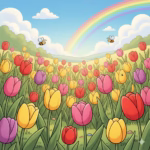 An airplane soars through a vibrant rainbow, leaving a trail of sparkling stars and happy, colorful confetti.