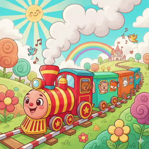 - Friendly cartoon airplanes soaring through fluffy clouds